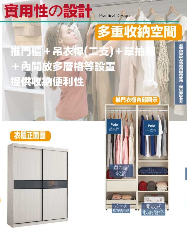 【綠家居】摩克4.1尺拉盤二吊衣桿單抽推門衣櫃/收納櫃