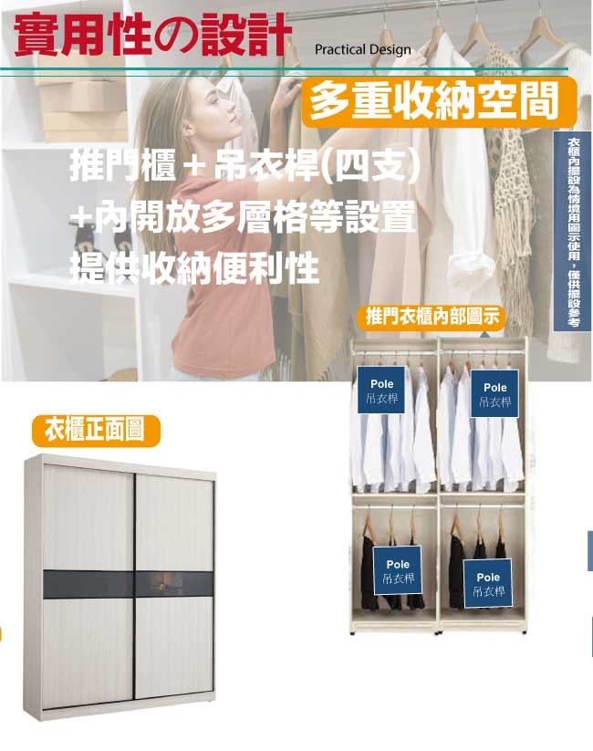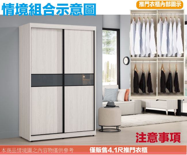 【綠家居】摩克4.1尺多功能四吊衣桿推門衣櫃/收納櫃