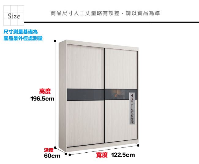 材質 | ◆產品名稱:【綠家居】摩克4.1尺多功能四吊衣桿推門衣櫃/收納櫃 尺寸:(寬)122.5(深)60(高)196.5公分 ◆材質: 材質:防蛀木心板+防潮耐磨腳座+5mm強化灰漆強化灰漆玻璃門片飾板 噴漆:防潮耐磨噴漆處理