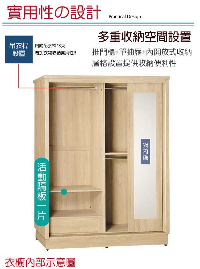 【綠家居】米安4尺推門衣櫃(二色可選+內含穿衣鏡面)