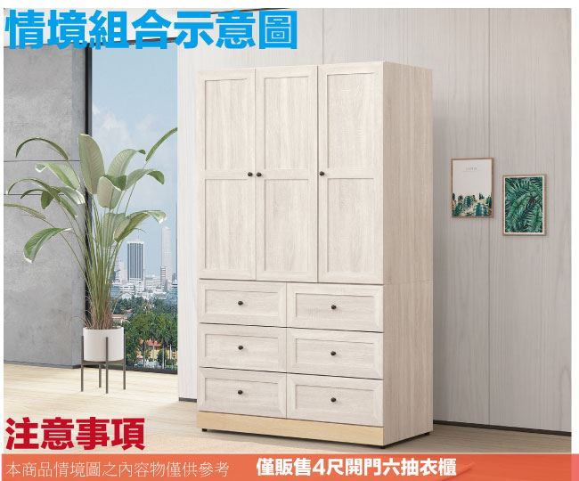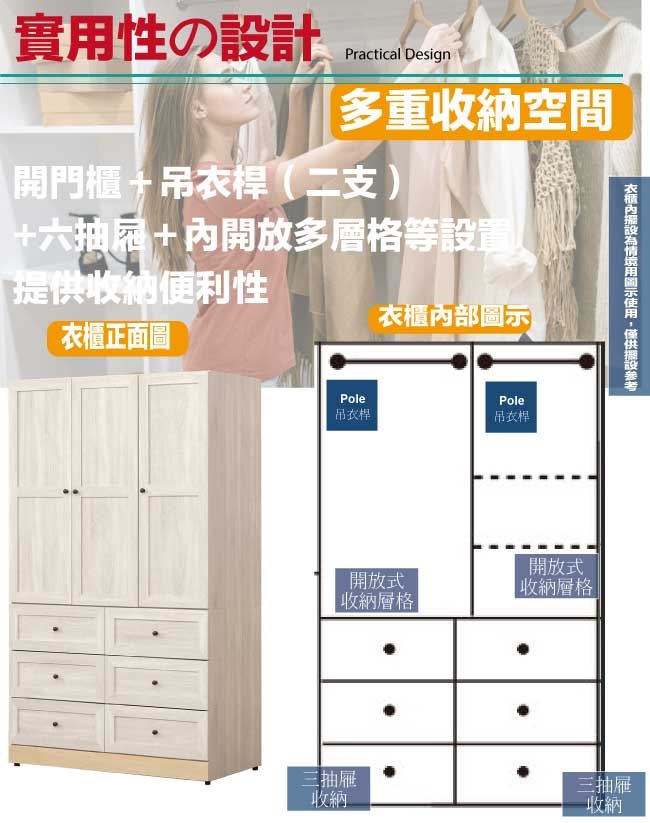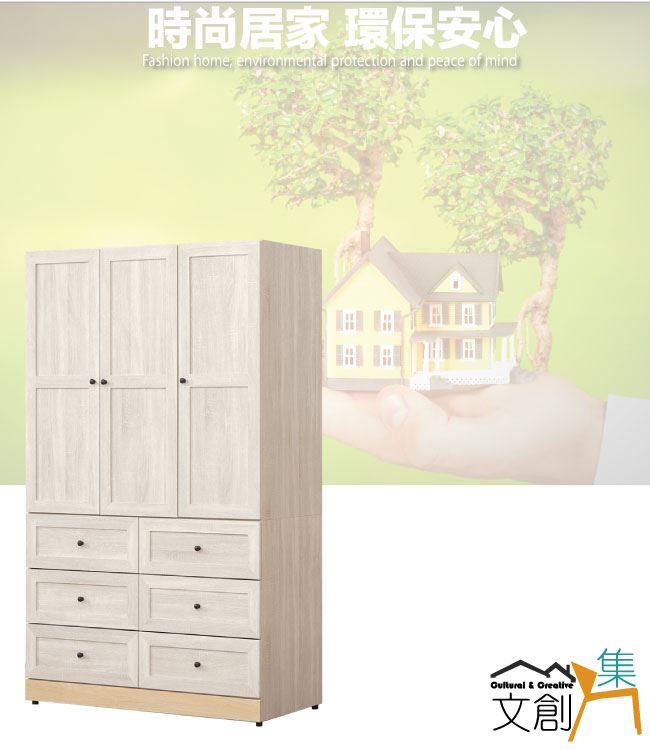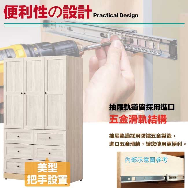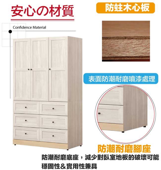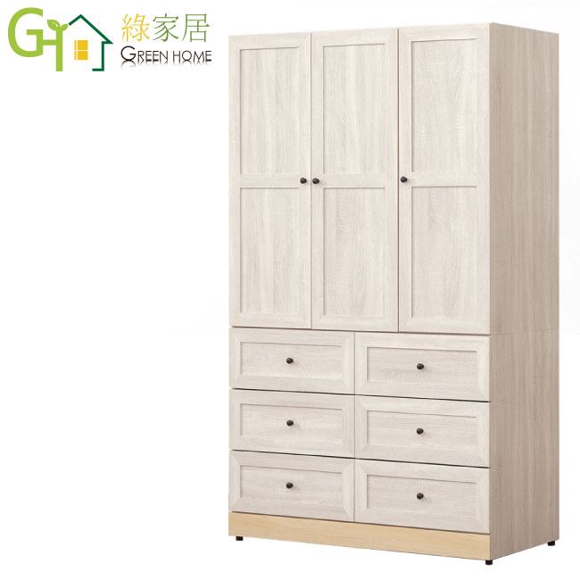 【綠家居】范辛頓4尺三門六抽衣櫃/收納櫃