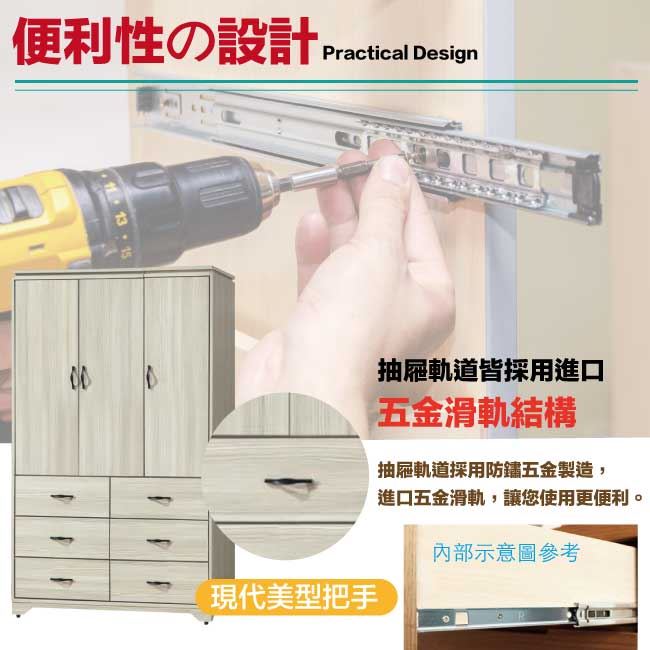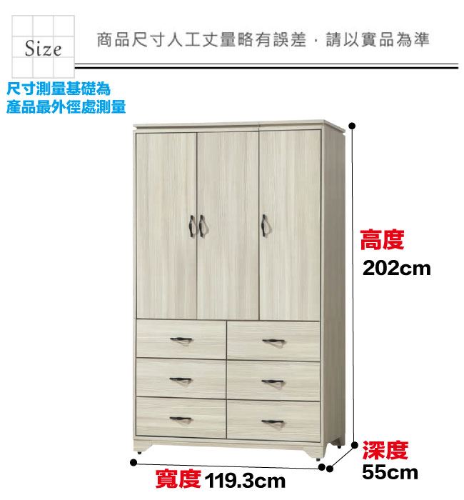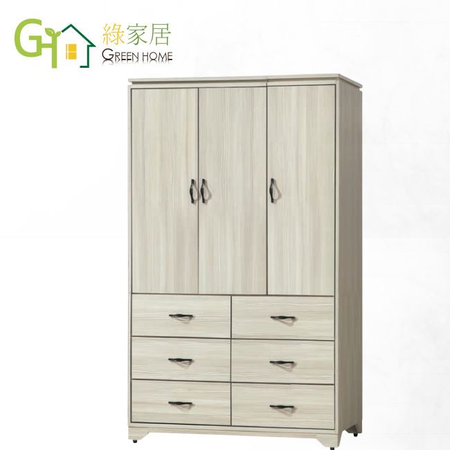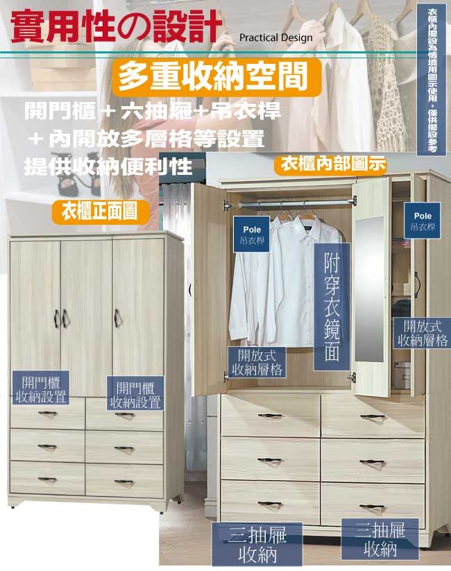 【綠家居】文創集 邁森4尺三門六抽衣櫃(內含穿衣鏡面)