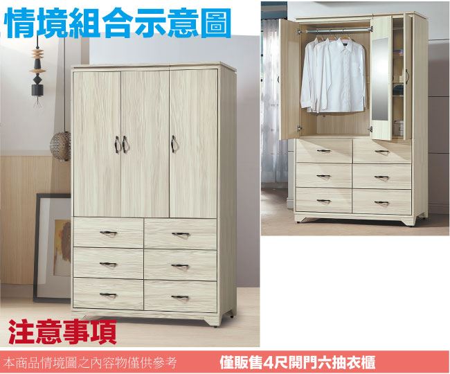 商 品 介 紹 | 【綠家居】邁森4尺三門六抽衣櫃(內含穿衣鏡面) 橡木紋色系+現代簡約風格+安心材質製造,使用放心+搭配居家更便利,整體採用防蛀木心板+五金滑軌結構+防潮耐磨底座+防夾手緩衝門片五金等材質搭配外層採用優莉坦耐磨全包式噴漆處理 ,採用開門櫃+吊衣桿+六抽屜+內含穿衣鏡面+內開放層格等收納空間設計,全由專人配送到家,專業安心服務,替你省下更多時間! 【商品特色】 橡木紋色系+現代簡約風格+安心材質製造,使用放心+搭配居家更便利 防蛀木心板+五金滑軌結構+防潮耐磨底座+防夾手緩衝門片五金等材質 採用開門櫃+吊衣桿+六抽屜+內開放層格+內含穿衣鏡面等收納空間設計 此商品不需要DIY組立,此商品為組立後之成品 品質保證、專業設計、貼心服務 全由專人配送到家,專業安心服務,替您省下更多時間 |