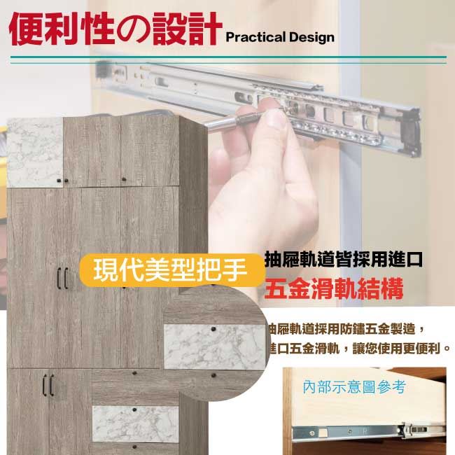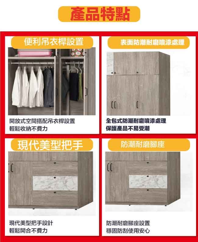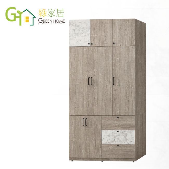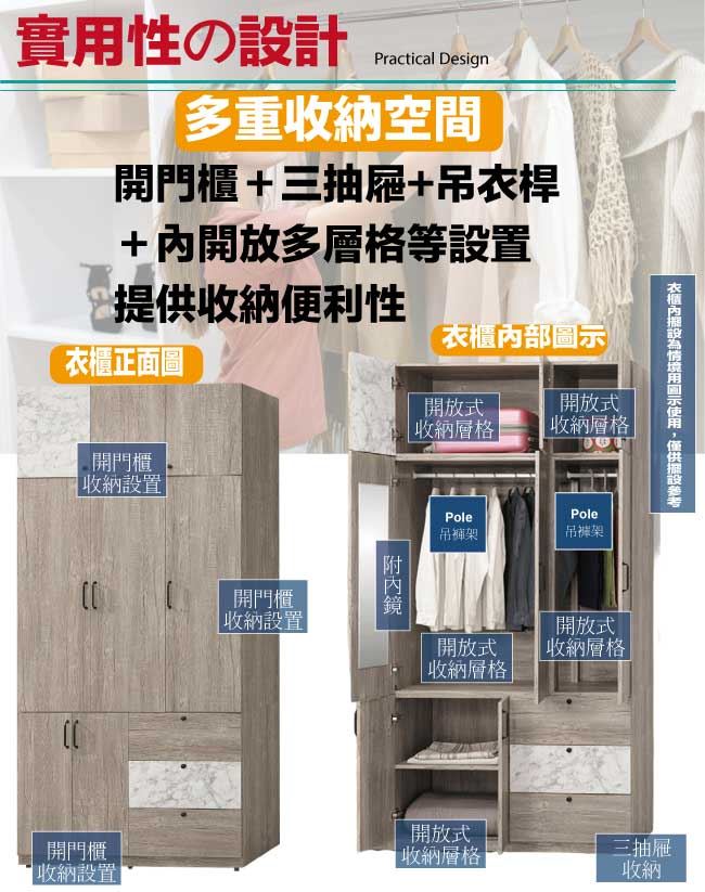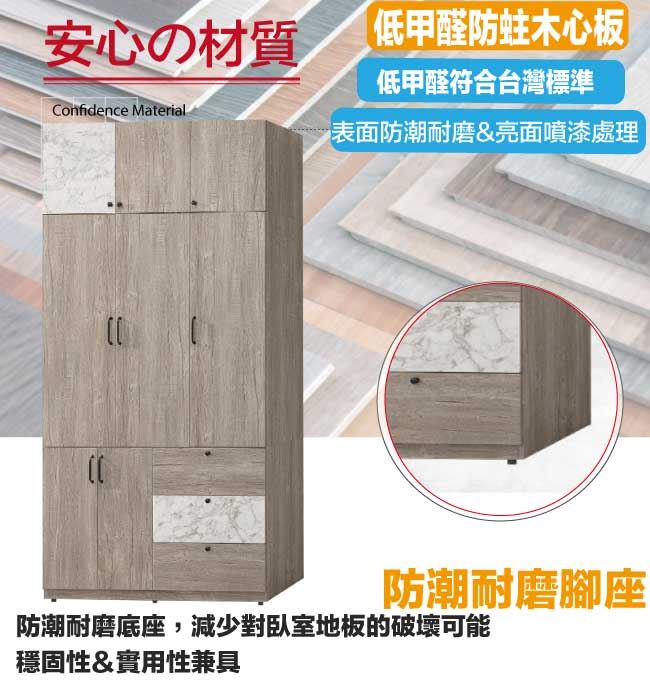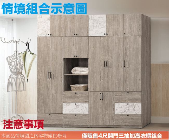 【綠家居】比博4尺八門三抽加高衣櫃組合(內含穿衣鏡面)