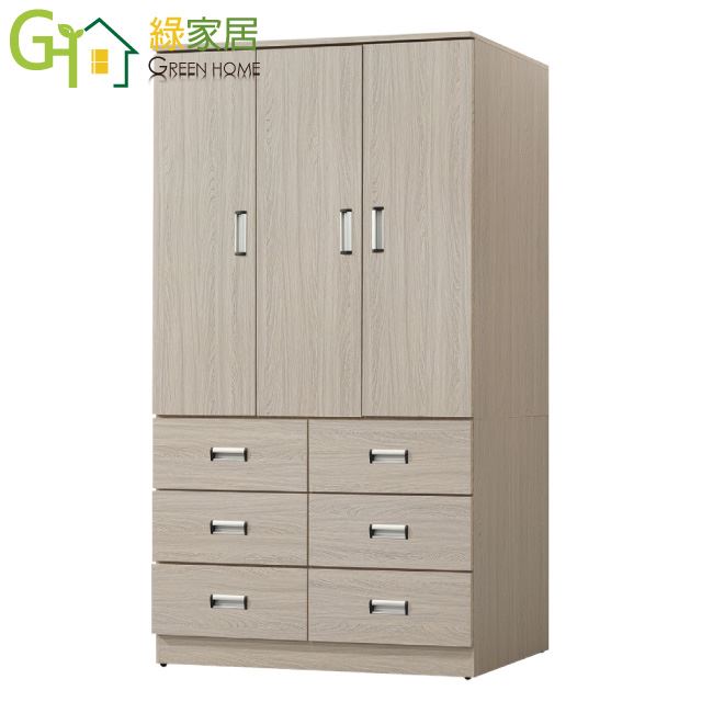 【綠家居】高爾亞4.1尺三門六抽衣櫃