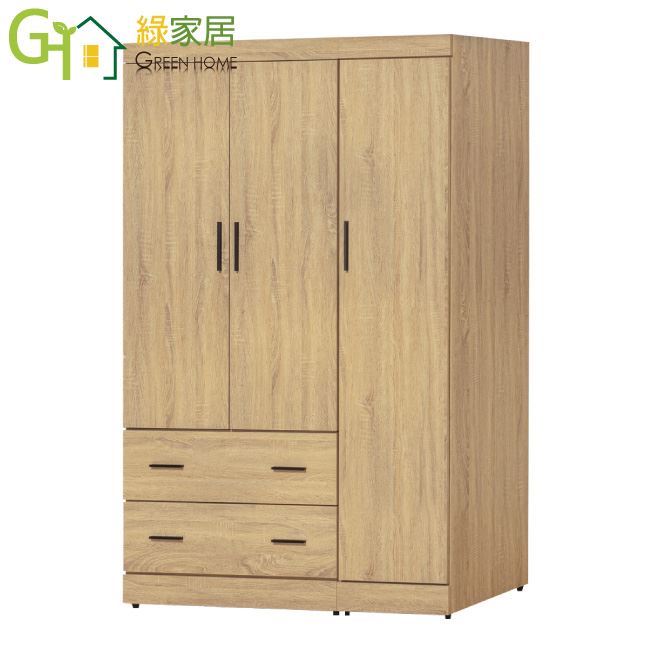 【綠家居】蘇維4尺三門二抽衣櫃組合(三色可選)