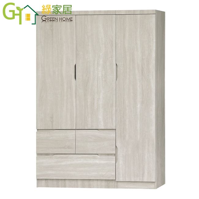 【綠家居】曼非4尺三門三抽衣櫃組合(三色可選)