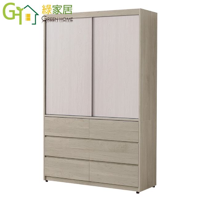 【綠家居】萊斯妮雙色4尺推門六抽衣櫃