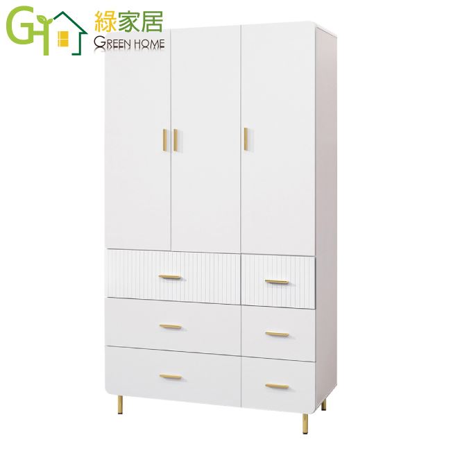 【綠家居】安卡雙色4尺三門六抽衣櫃