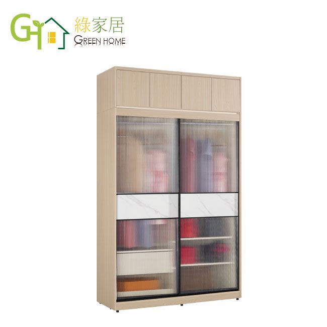 【綠家居】維爾玻璃4.1尺鋁框岩板加高衣櫃組合(吊衣桿x2+單抽屜)