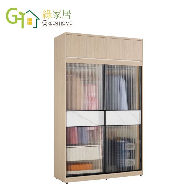 【綠家居】維爾4.1尺鋁框岩板加高玻璃衣櫃組合(吊衣桿x3+單抽屜)