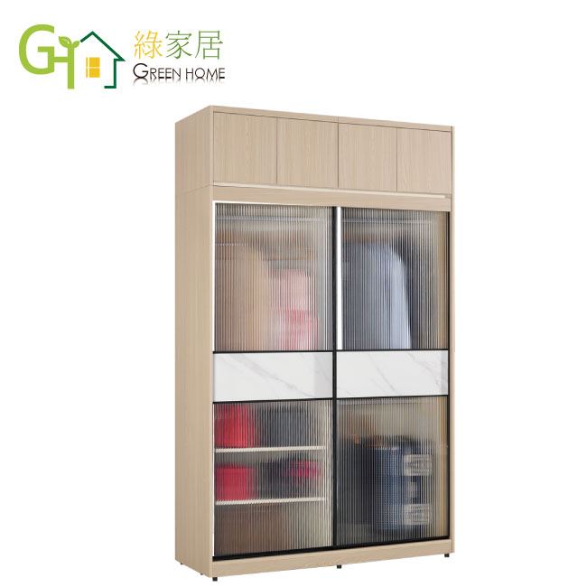 【綠家居】維爾岩板4.1尺鋁框玻璃加高衣櫃組合(吊衣桿x3+內多分層格)