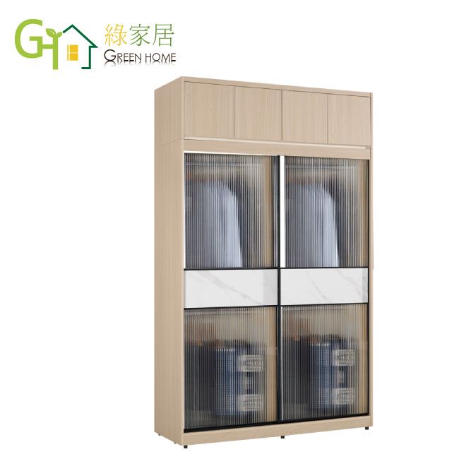 【綠家居】維爾岩板4.1尺鋁框玻璃加高衣櫃組合(吊衣桿x4+內多分層格)