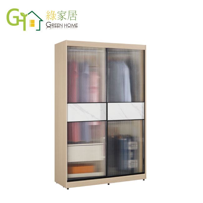 【綠家居】維爾鋁框4.1尺岩板玻璃衣櫃(吊衣桿x3+單抽屜)