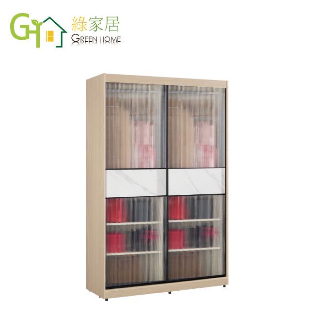 【綠家居】維爾鋁框4.1尺岩板玻璃衣櫃(吊衣桿x2+內多分層格)