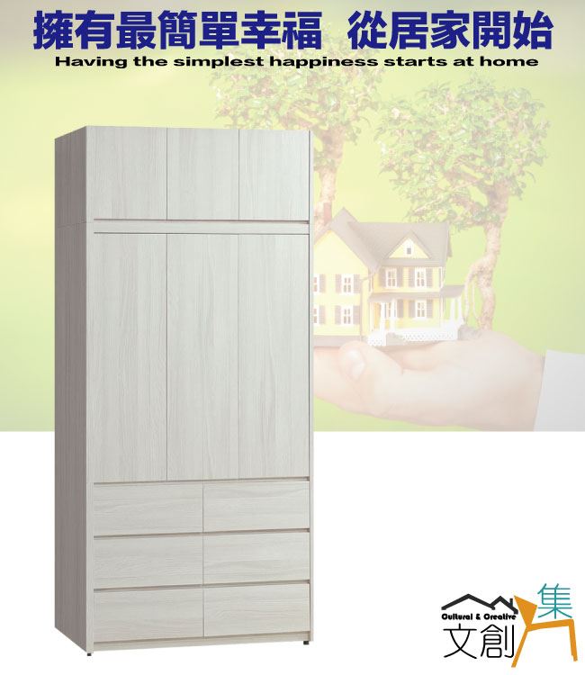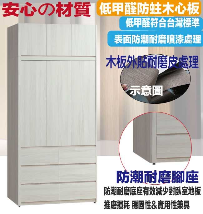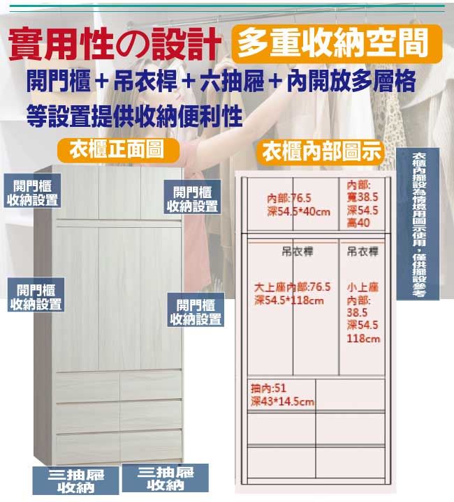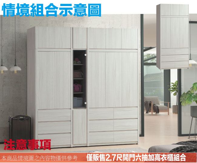 【綠家居】羅利安4尺開門加高六抽衣櫃組合
