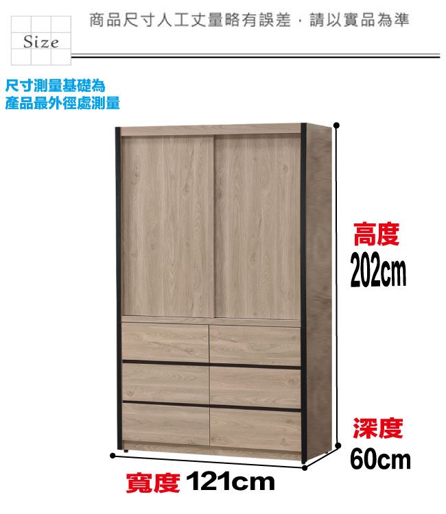 材質 | ◆產品名稱:【綠家居】安格4尺推門六抽衣櫃 尺寸:(寬)121x(深)60x(高)202/公分 ◆材質: 材質:防蛀木心板+防潮耐磨腳座+五金滑軌結構 噴漆:防潮耐磨噴漆處理 |