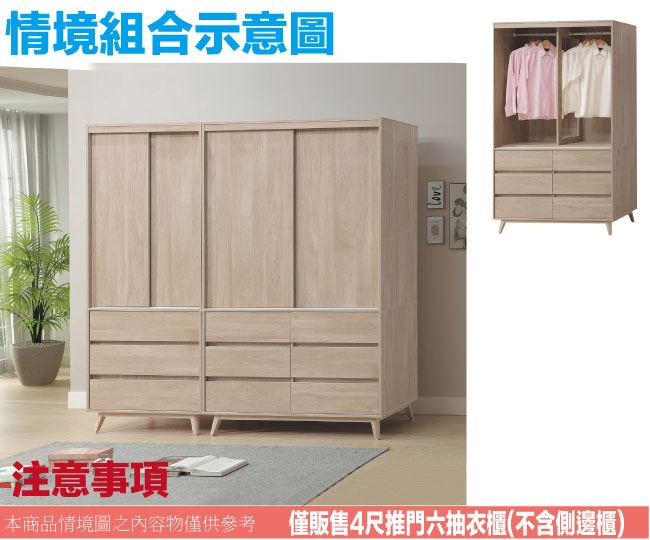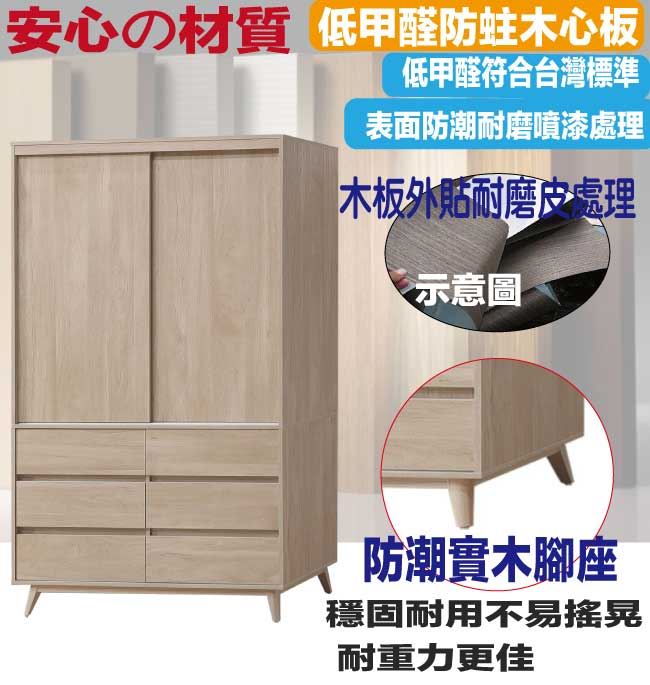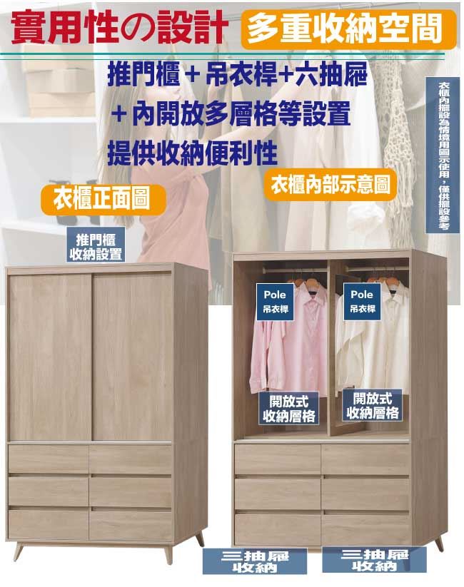 【綠家居】奧納夫4尺推門六抽衣櫃