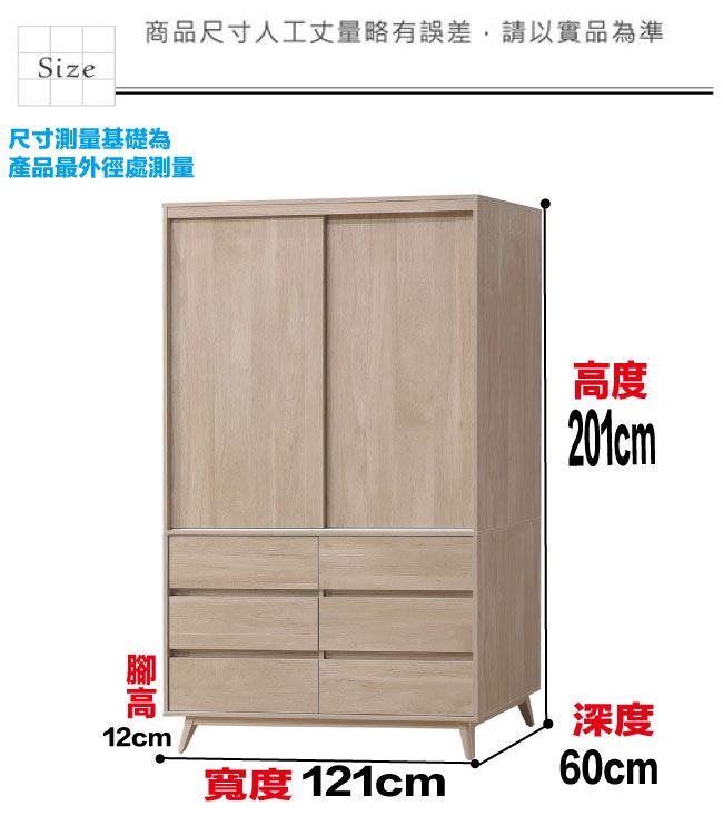 材質 | ◆產品名稱:【綠家居】奧納夫4尺推門六抽衣櫃 尺寸:(寬)121x(深)60x(高)201/公分 ◆材質: 材質:防蛀木心板+實木防刮腳座+五金滑軌結構 噴漆:防潮耐磨噴漆處理 |