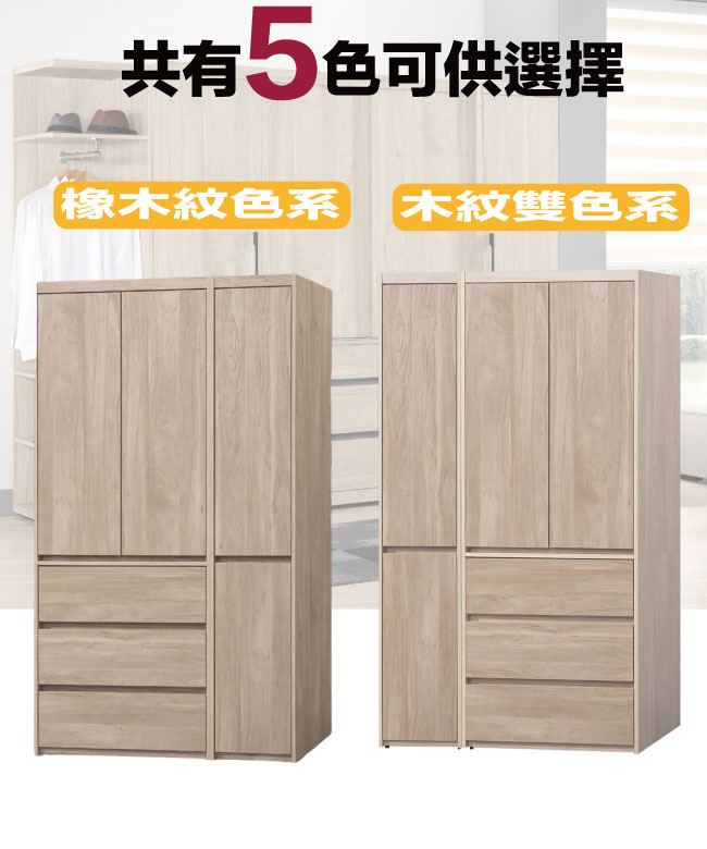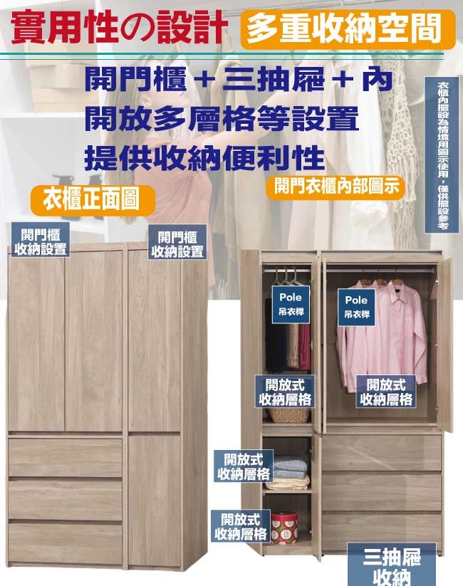 開門櫃+吊衣桿+三抽屜
