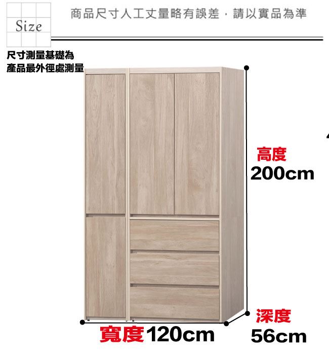 材質 | ◆產品名稱:【綠家居】曼特4尺四門三抽衣櫃組合(二色可選) 尺寸:(寬)120x(深)56x(高)200/公分 ◆材質: 材質:防蛀木心板+防潮耐磨腳座+防夾手緩衝門片五金+五金滑軌結構 噴漆:防潮耐磨噴漆處理 |