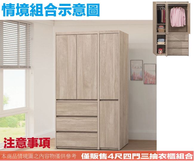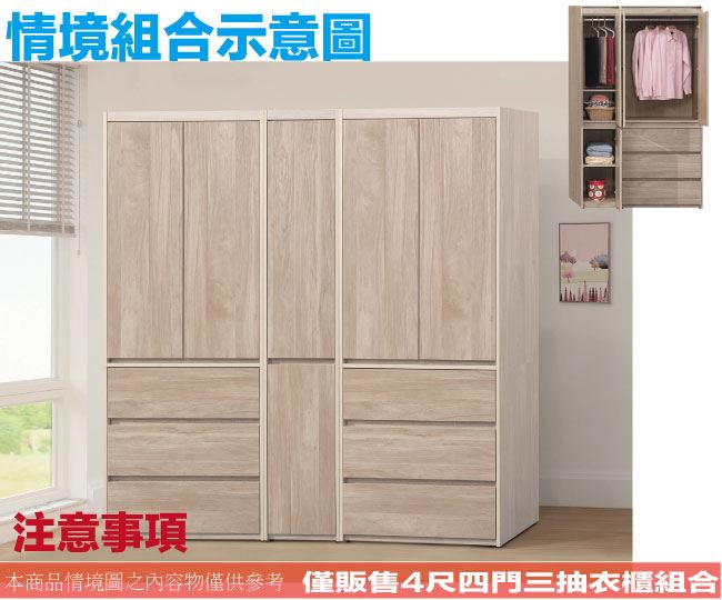 【綠家居】曼特4尺四門三抽衣櫃組合(二色可選)