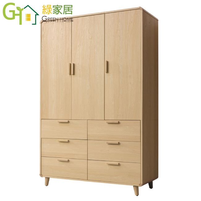 【綠家居】黛斯原橡4尺三門六抽衣櫃