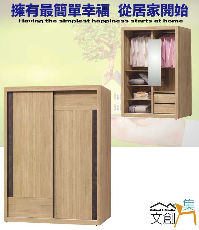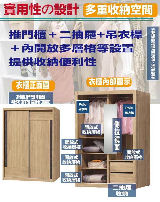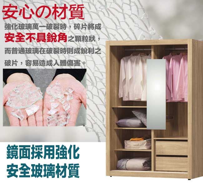 【綠家居】派爾4.7尺推門內鏡面二抽衣櫃
