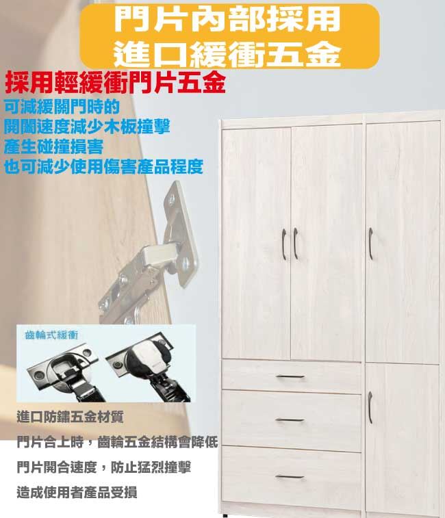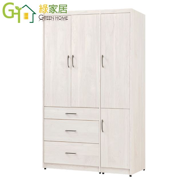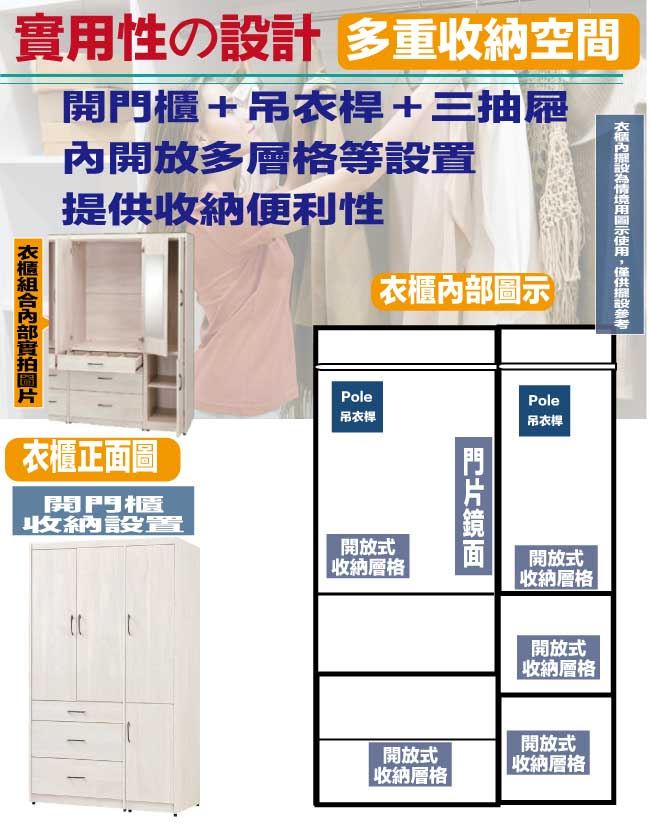 【綠家居】凱萊4尺三抽四門衣櫃(門片內設穿衣鏡面)