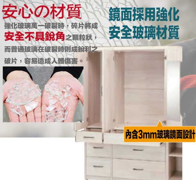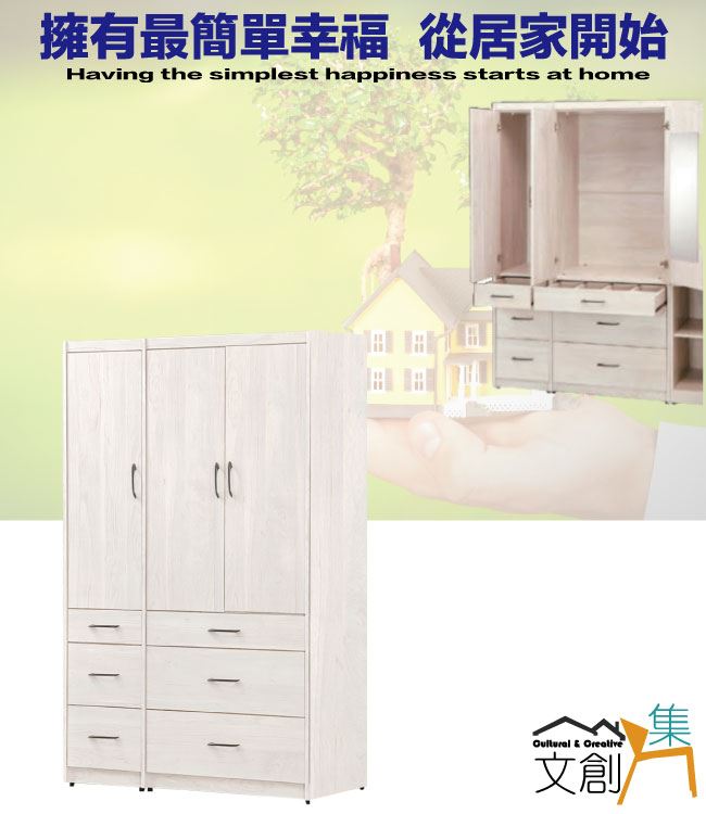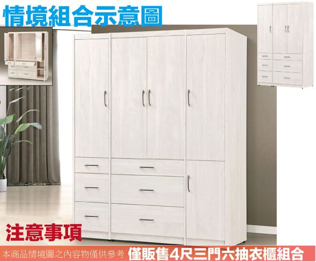 商 品 介 紹 | 【綠家居】凱萊4尺三門六抽衣櫃(門片內設穿衣鏡面) 白梧桐木紋色系+現代簡約風格+安心材質製造,使用放心+搭配居家更便利,整體採用防蛀木心板+五金滑軌結構+防夾手緩衝門片五金+防潮耐磨底座等安心材質製造搭配外層採用優莉坦耐磨全包式噴漆處理 ,採用開門櫃+吊衣桿+六抽屜+門片內設穿衣鏡面+內開放層格等收納空間設計,全由專人配送到家,專業安心服務,替你省下更多時間! 【商品特色】 白梧桐木紋色系+現代簡約風格+安心材質製造,使用放心+搭配居家更便利 防蛀木心板+五金滑軌結構+防潮耐磨底座+防夾手緩衝門片五金等安心材質製造 採用開門櫃+吊衣桿+六抽屜+門片內設穿衣鏡面+內開放層格等收納空間設計 此商品不需要DIY組立,此商品為組立後之成品 品質保證、專業設計、貼心服務 全由專人配送到家,專業安心服務,替您省下更多時間