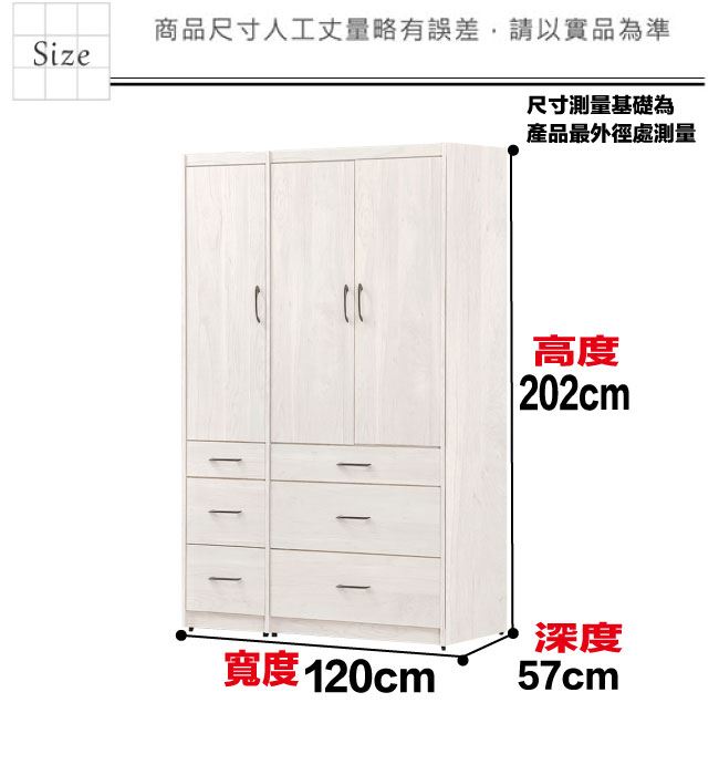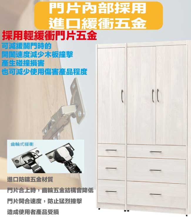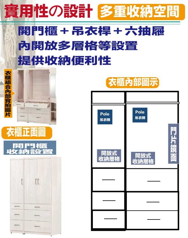 【綠家居】凱萊4尺三門六抽衣櫃(門片內設穿衣鏡面)