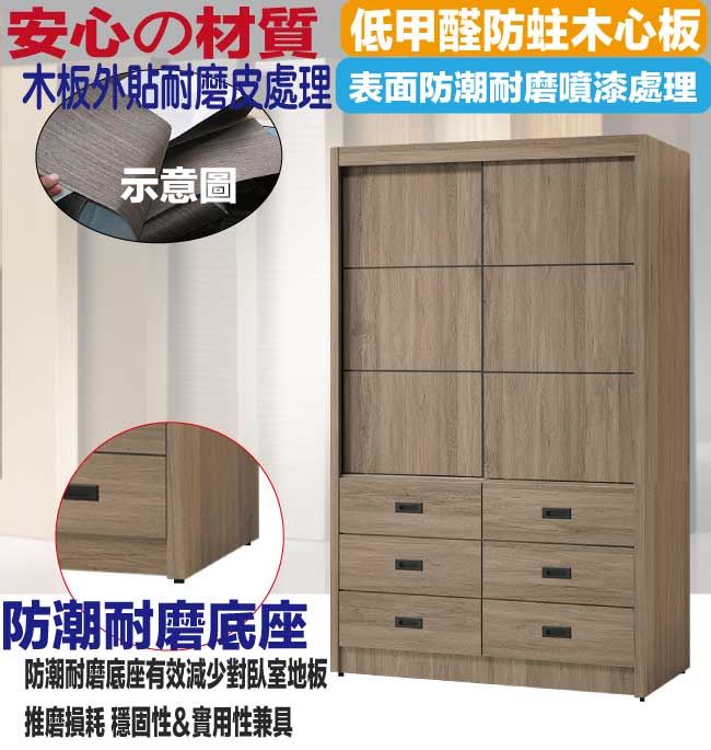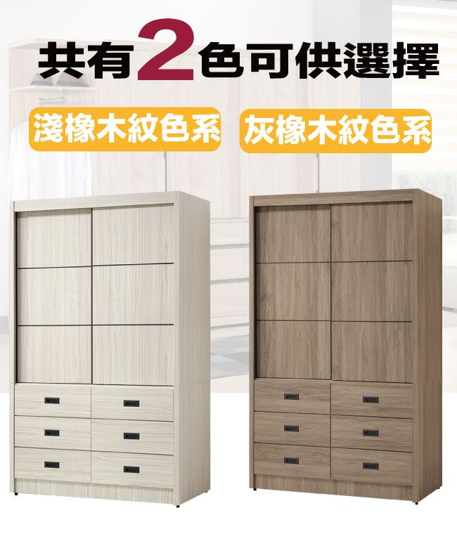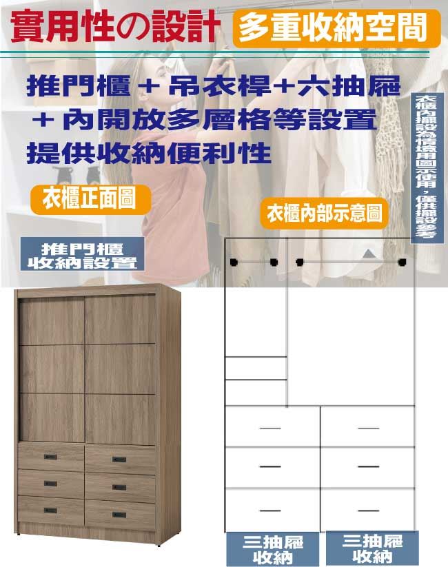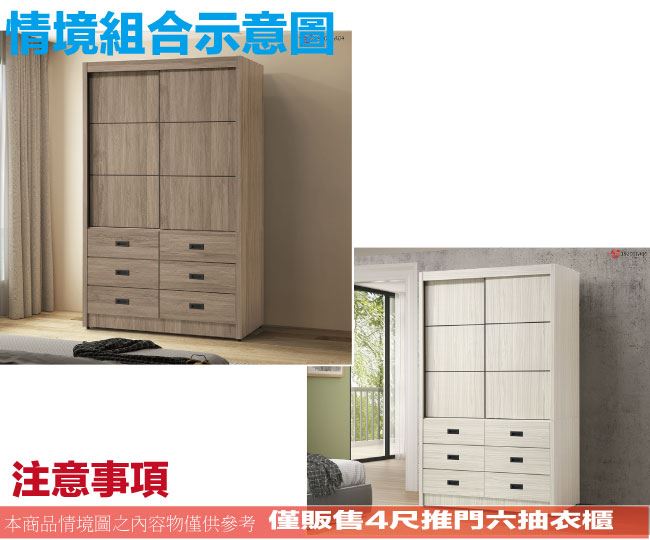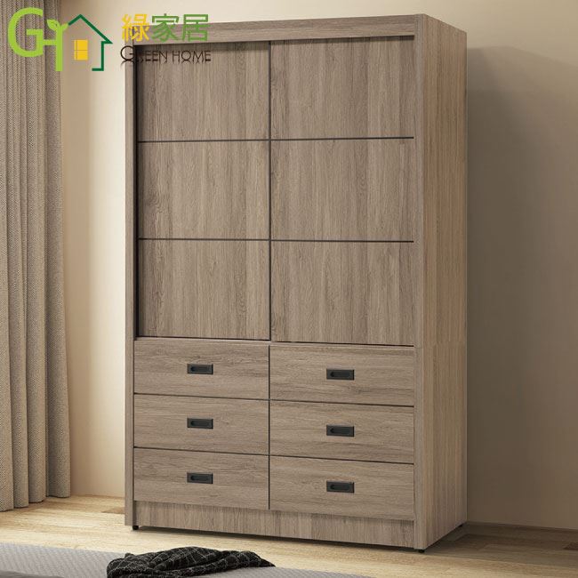 【綠家居】克星4尺推門六抽衣櫃(二色系可選)