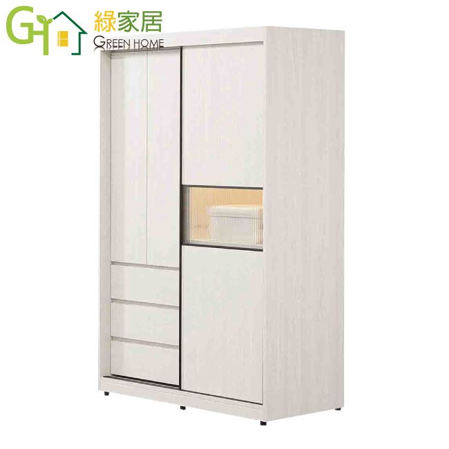 【綠家居】菲可達4尺玻璃開&推門衣櫃(內含LED感應燈)