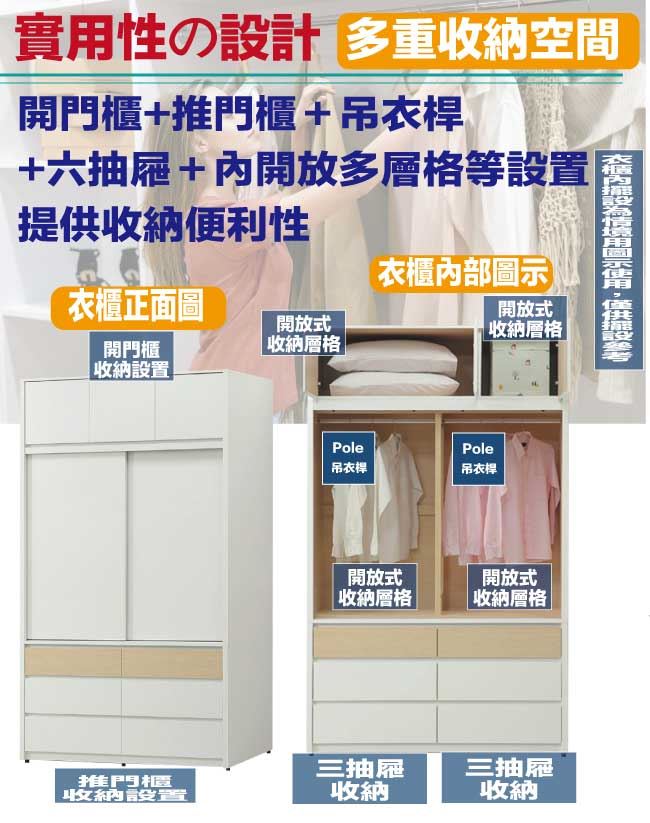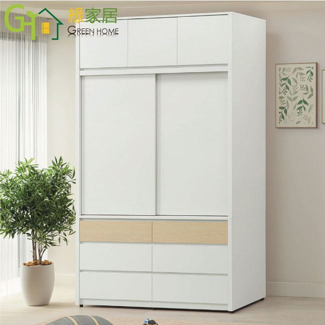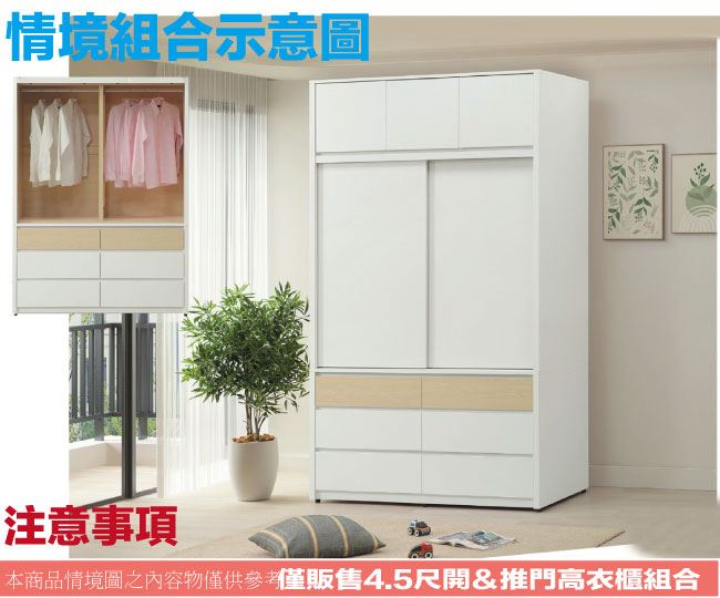 【綠家居】歐瑞雙色4.5尺開&推門六抽加高衣櫃組合
