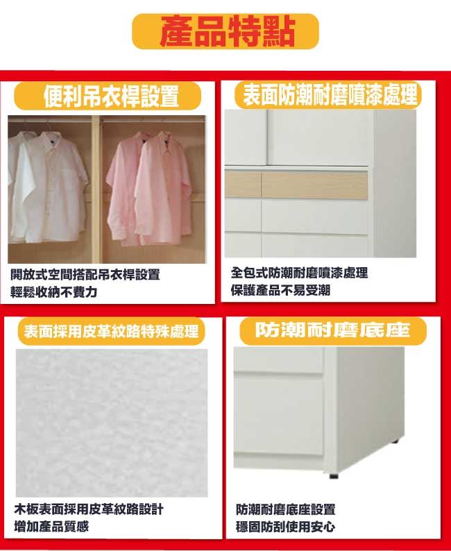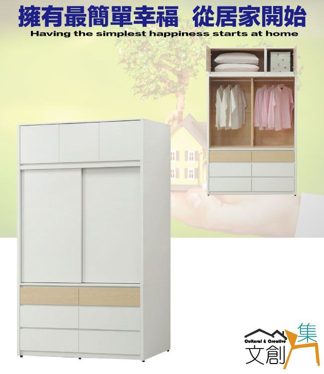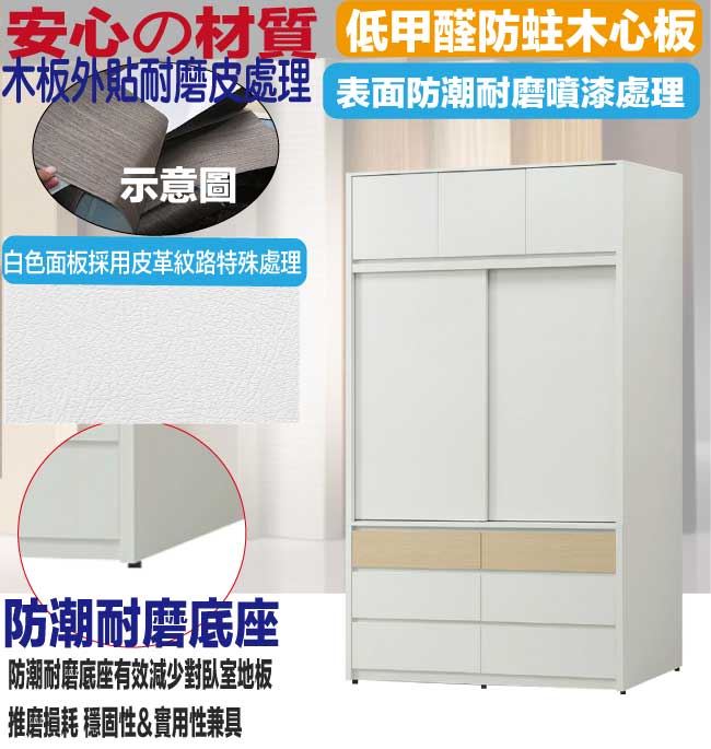 商 品 介 紹 | 【綠家居】歐瑞雙色4.5尺開&推門六抽加高衣櫃組合 木紋雙色系+安心材質製造,使用放心+搭配居家更便利,採用防蛀木心板+防潮耐磨底座+防夾手緩衝門片五金+五金滑軌結構+白色面板外層採用皮革紋路特殊處理等安心材質製造 ,外層採用防潮耐磨噴漆處理搭配採用開門櫃&推門櫃+吊衣桿+六抽屜+內開放層格等收納空間設計,全由專人配送到家,專業安心服務,替你省下更多時間! 【商品特色】 木紋雙色系+安心材質製造,使用放心+搭配居家更便利 採用防蛀木心板+防潮耐磨底座+防夾手緩衝門片五金+五金滑軌結構+白色面板外層採用皮革紋路特殊處理等安心材質製造 搭配採用開門櫃&推門櫃+吊衣桿+六抽屜+內開放層格等收納空間設計 此商品不需要DIY組立,此商品為組立後之成品 品質保證、專業設計、貼心服務 全由專人配送到家,專業安心服務,替您省下更多時間