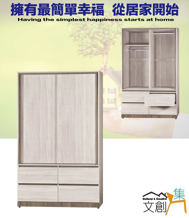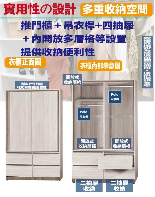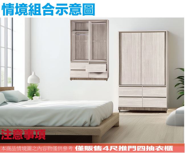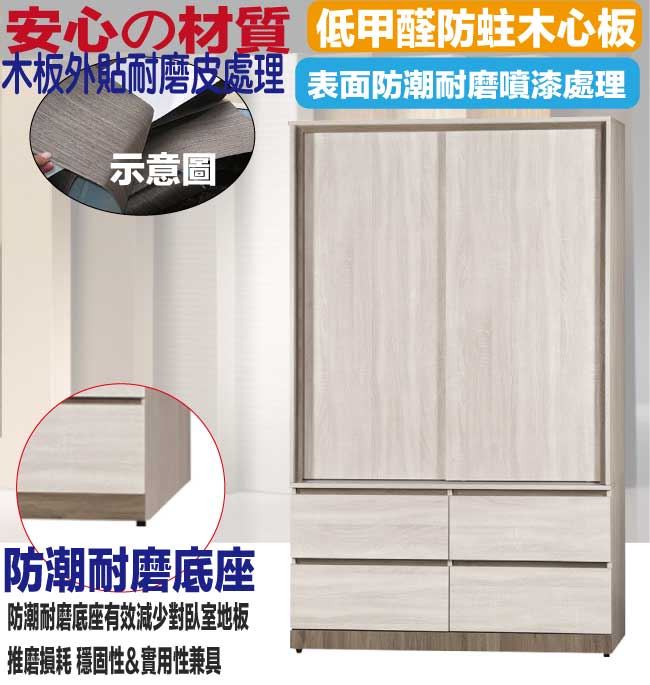 【綠家居】希卡4尺推門四抽衣櫃