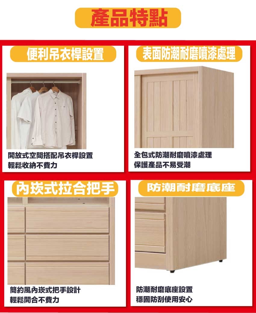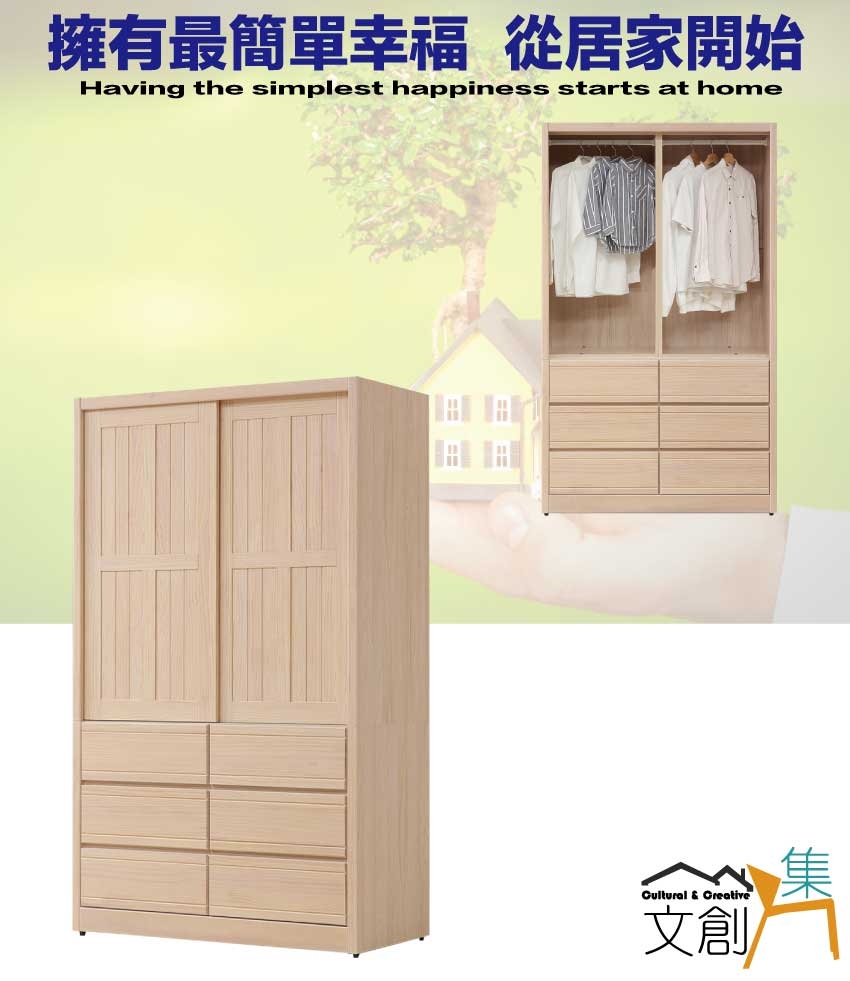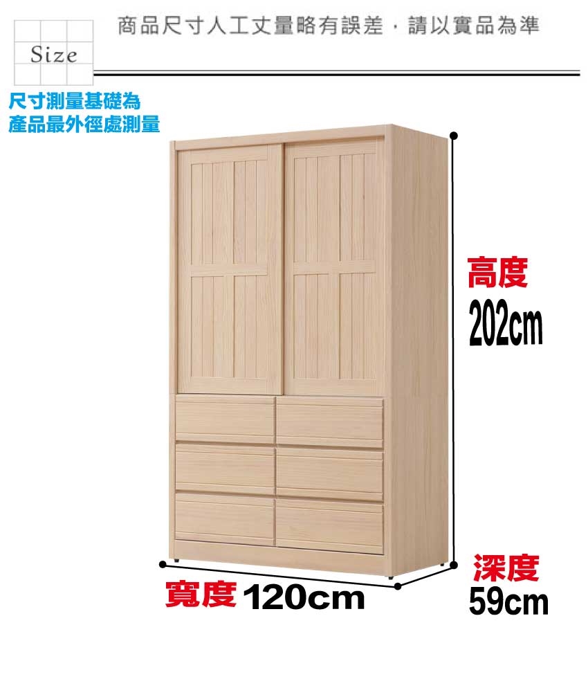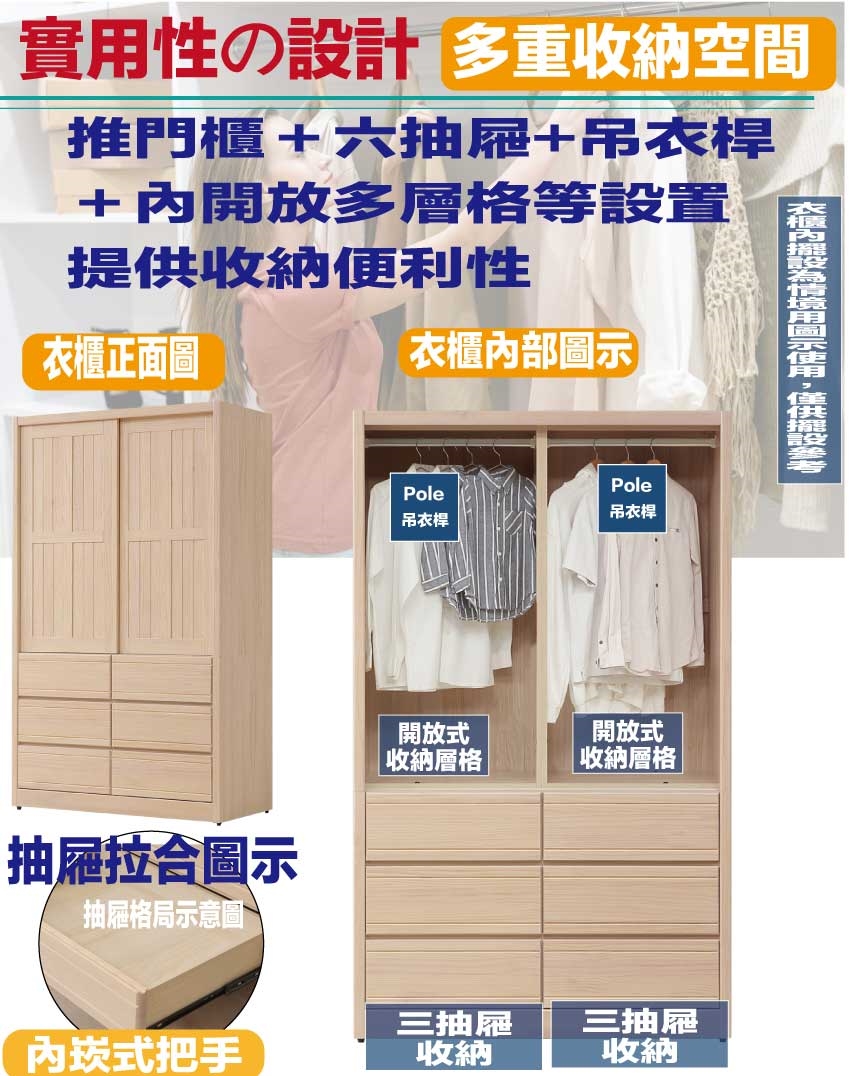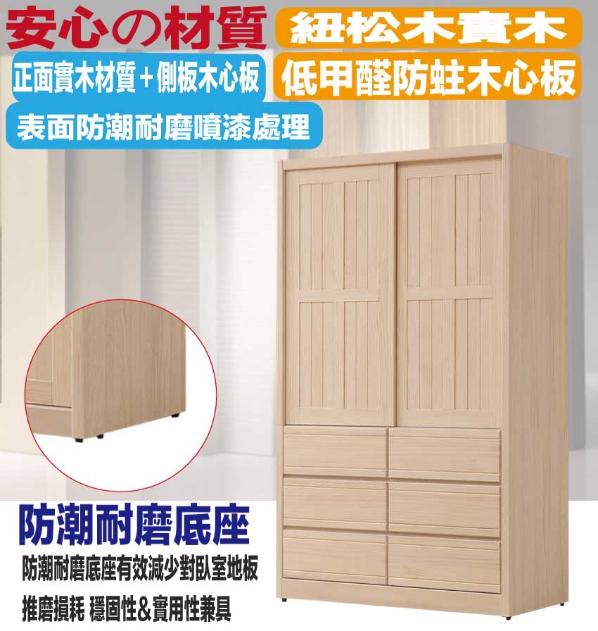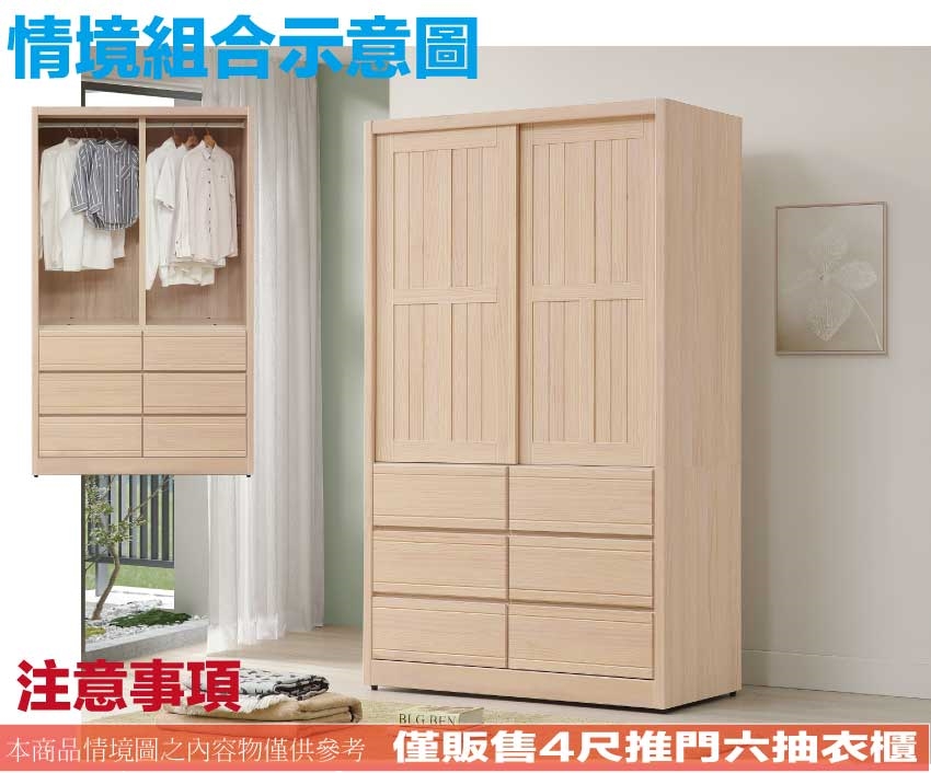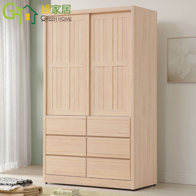 - ◆產品名稱:【綠家居】希望4尺實木推門六抽衣櫃