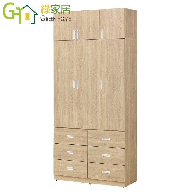 【綠家居】蘿柏原橡4尺六門六抽加高衣櫃組合