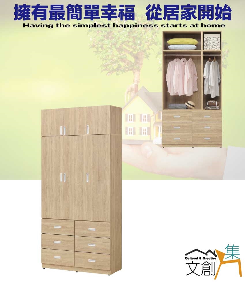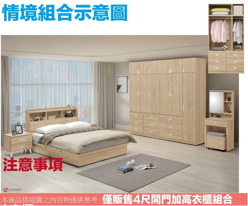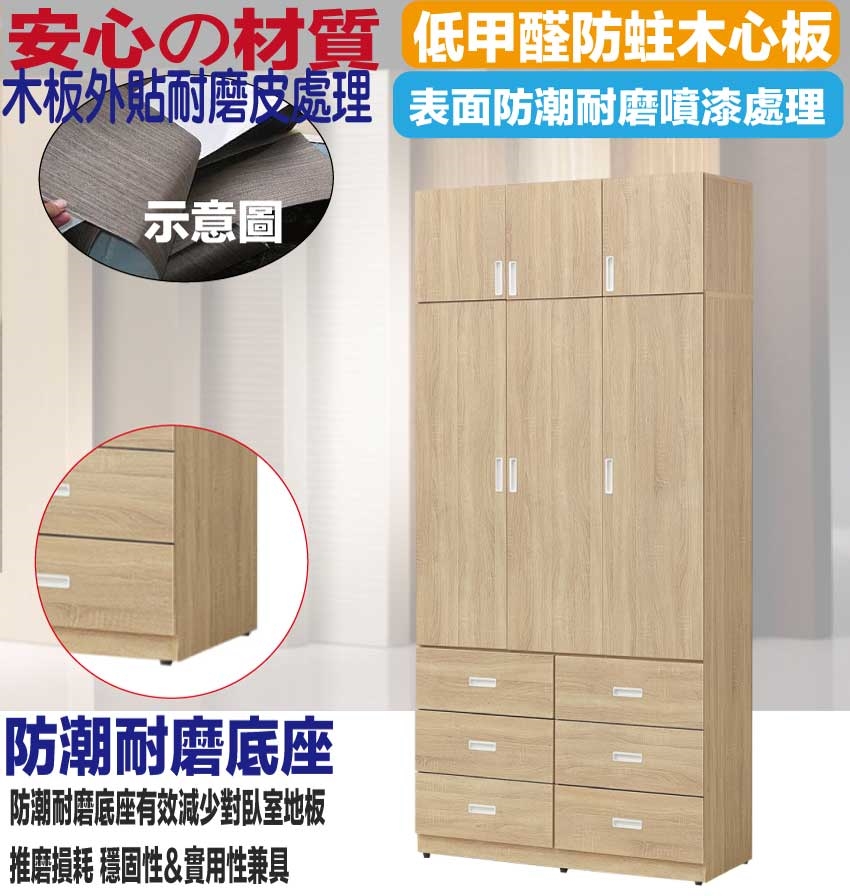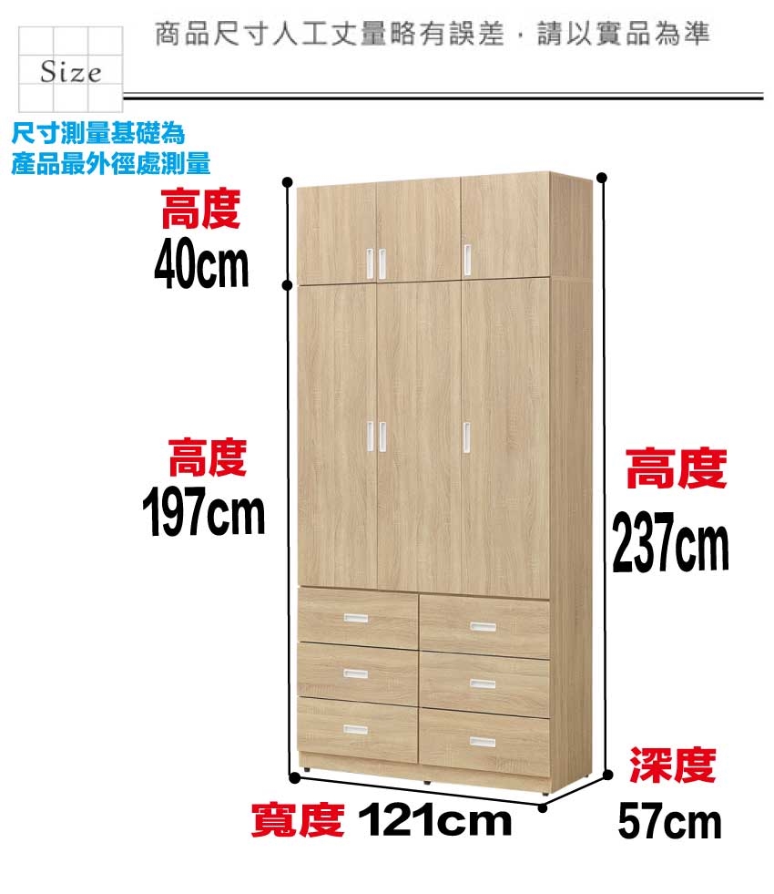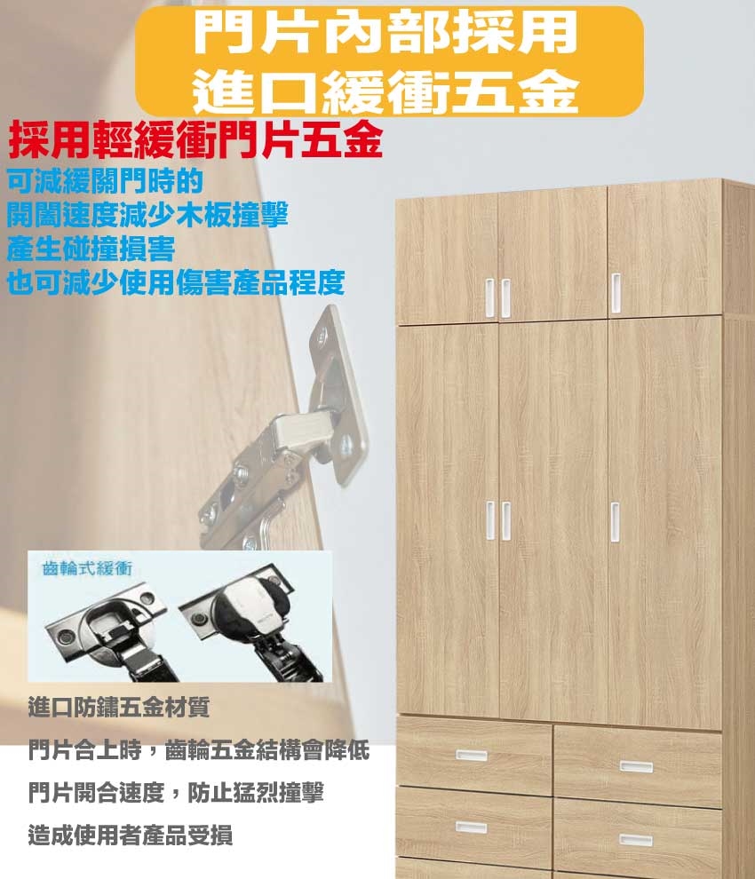 - ◆產品名稱:【綠家居】蘿柏原橡4尺六門六抽加高衣櫃組合