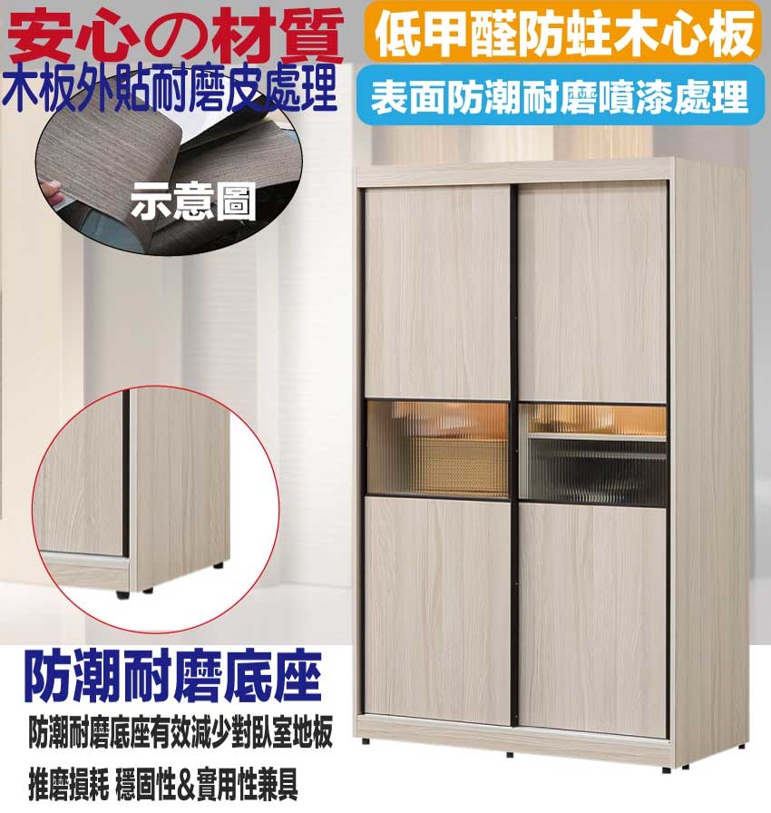 ★偏遠地區需額外加收運費,下標請先問與答詢問★ ★下訂前注意 由於商品流動較快,下訂前請先詢問是否有貨在下訂喔~★ 【綠家居】希望4尺推門衣櫃 淺橡木紋色系+安心材質製造,使用放心+搭配居家更便利,採用防蛀木心板+防潮耐磨底座+5mm直紋強化玻璃等安心材質製造 ,外層採用防潮耐磨噴漆處理搭配採用推門櫃+吊衣桿+內開放層格等收納空間設計,全由專人配送到家,專業安心服務,替你省下更多時間!