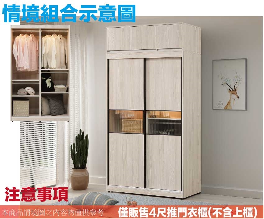 - ◆產品名稱:【綠家居】希望4尺推門衣櫃