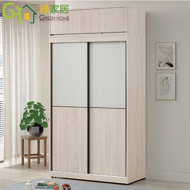 【綠家居】希望雙色4尺開&推門加高衣櫃組合