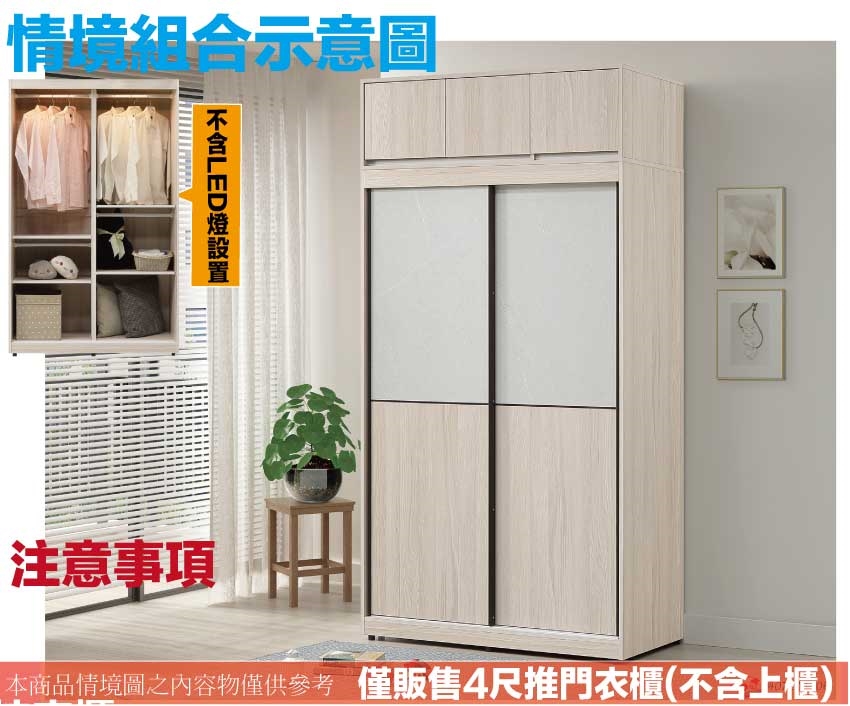 - ◆產品名稱:【綠家居】希望雙色4尺推門衣櫃