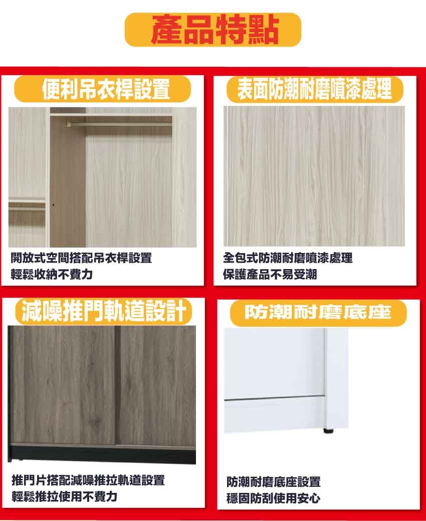 ★偏遠地區需額外加收運費,下標請先問與答詢問★ ★下訂前注意 由於商品流動較快,下訂前請先詢問是否有貨在下訂喔~★ 【綠家居】卡蒂柏4.1尺推門衣櫃(四色可選) 四色可選+安心材質製造,使用放心+搭配居家更便利,採用防蛀木心板+防潮耐磨底座等安心材質製造 ,外層採用防潮耐磨噴漆處理搭配採用推門櫃+吊衣桿+單抽屜+內開放式層格等收納空間設計,全由專人配送到家,專業安心服務,替你省下更多時間!