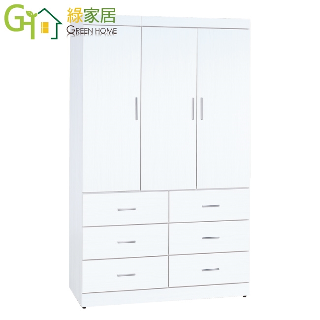 【綠家居】卡蒂柏4尺三門六抽衣櫃(內含門片內貼穿衣鏡)