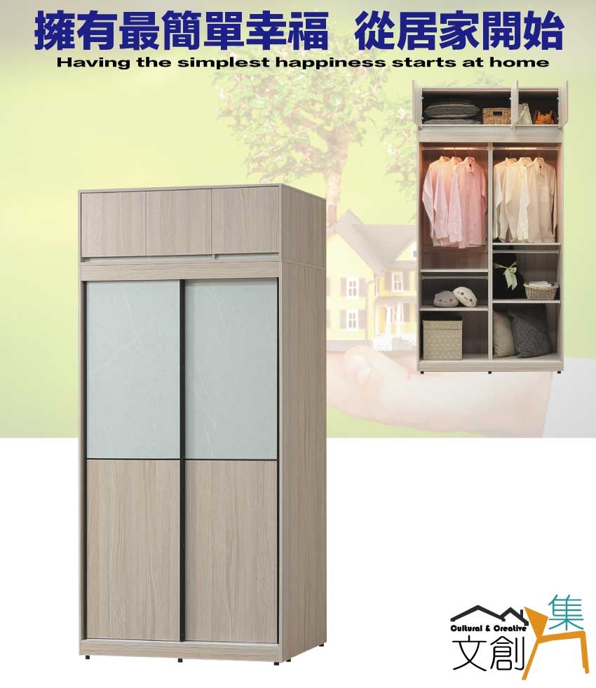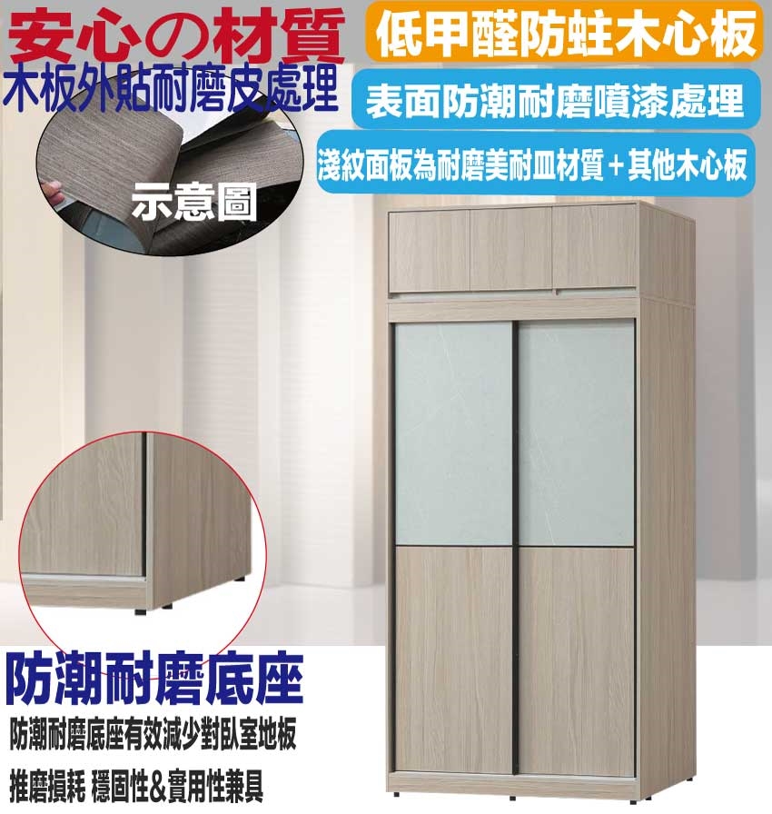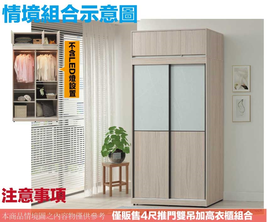 【綠家居】范巴雙色4尺開&推門加高衣櫃組合