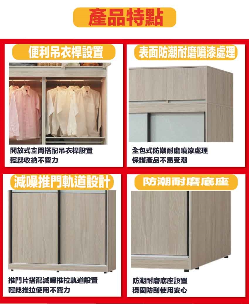 - ◆產品名稱:【綠家居】范巴雙色4尺開&推門加高衣櫃組合