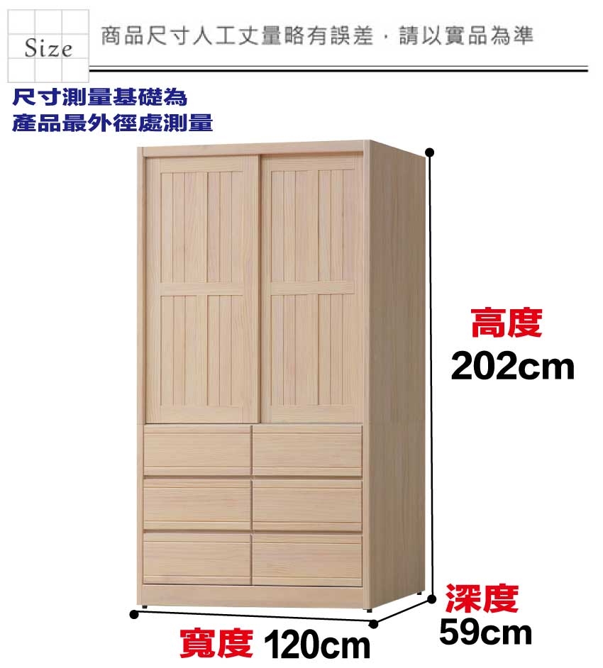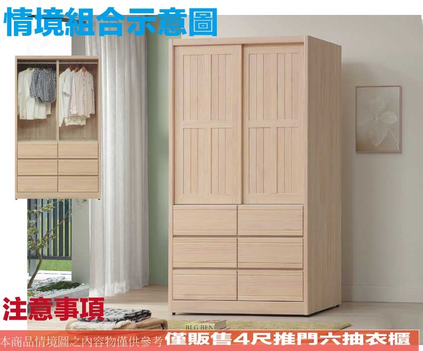 - ◆產品名稱:【綠家居】巴卡4尺實木推門六抽衣櫃
