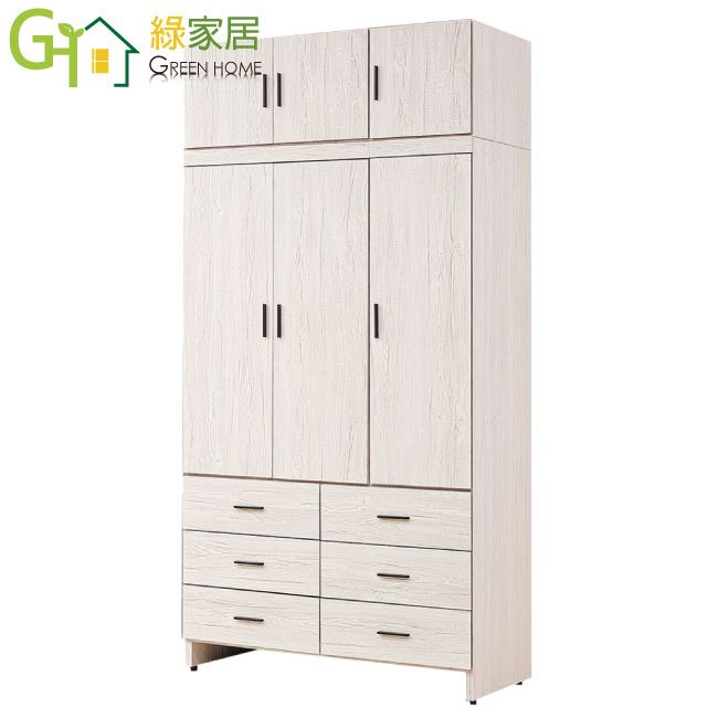 【綠家居】得卡利4尺六門六抽加高衣櫃組合