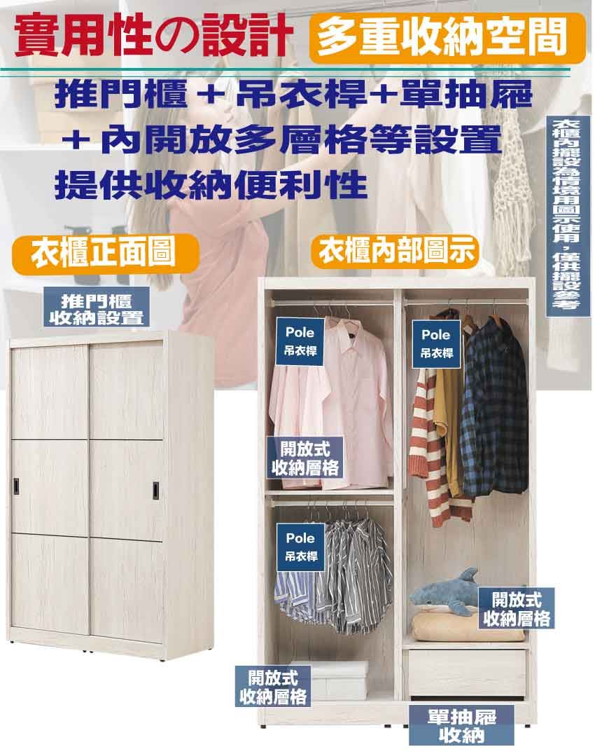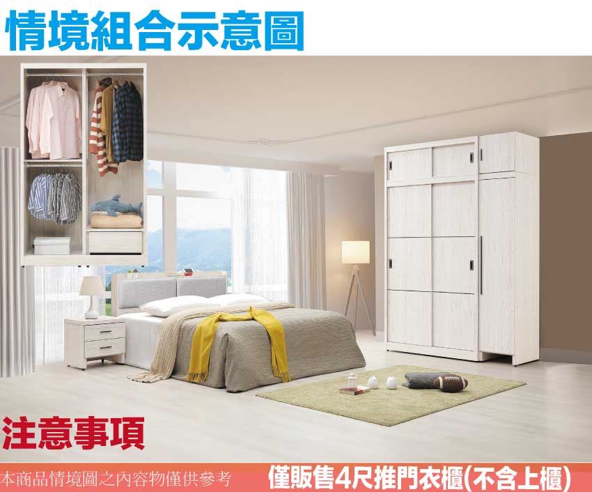 - ◆產品名稱:【綠家居】得卡利4尺推門衣櫃